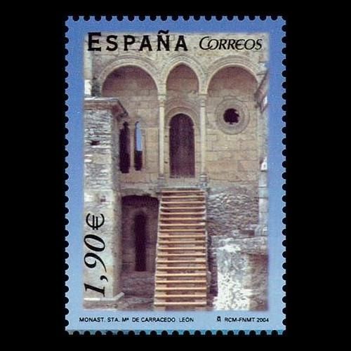 Sello dedicado a la antigua abadía - siglo X - perteneciente inicialmente a la órden benedictina y traspasada posteriormente a la cisterciense. Se ubica en Carracedo del Monasterio, municipio de Carracedelo.