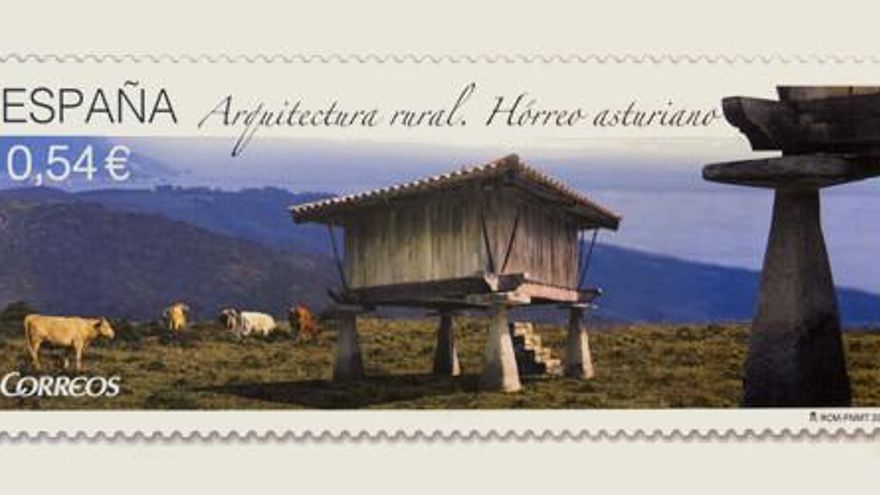 Y para finalizar, un sello emitido en el año 2014 de una serie denominada 'Arquitectura rural' y que está dedicado a una construcción tradicional en muchas partes de la geografía de la provincia de León como es el hórreo, aunque el sello se emitió bajo el título de Hórreo asturiano. No en vano indican los expertos que el hórreo construido en madera más antiguo de España se encuentra en Las Bodas, Boñar.