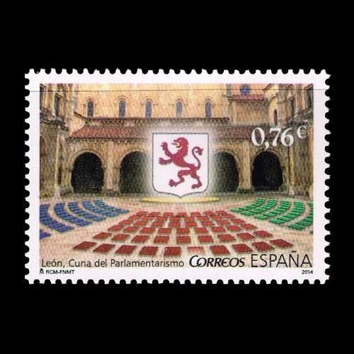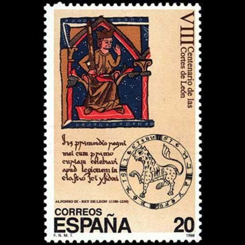 Sello emitido para conmemorar los 800 años de la celebración de las cortes de 1188 convocadas por el rey Alfonso VIII de León (mal llamado IX), declaradas por la UNESCO como Memoria de la Humanidad.