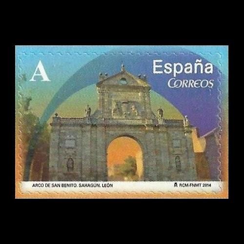 El sello representa el arco de San Benito, Sahagún, y pertenece a una serie de 8 sellos que representan diferentes Arcos y Puestas monumentales de España.