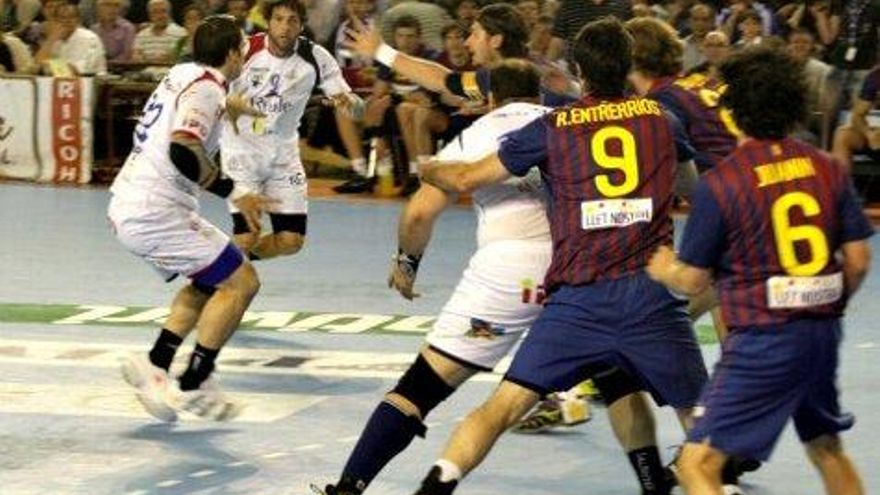 Raúl Entrerríos abría la defensa de los leoneses y apoyado en las grandes estrellas del conjunto catalán llegaban al descanso con una pequeña ventaja de 15 a 17 goles. En los instantes finales de los primeros 30 minutos el arbitraje ya fue bastante protestado por favorecer al conjunto catalán, o así lo entendía la hinchada local.