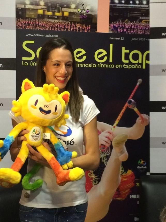 Carol posa con Vinicius, la mascota olímpica de los Juegos de Río 2016.