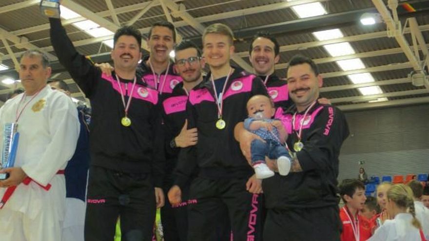 Otro metal dorado recayó en los más pequeños, en Kata Equipos Alevín, quienes recibieron la más alta recompensa situándose con el oro en primera posición. La tercera medalla de oro conseguida por el Club Máster 10, el club con más éxitos a nivel nacional e internacional de la provincia, fue a manos del equipo de Kata Absoluto -Jorge Fernandez, Valentin Marcos y David Moral-.