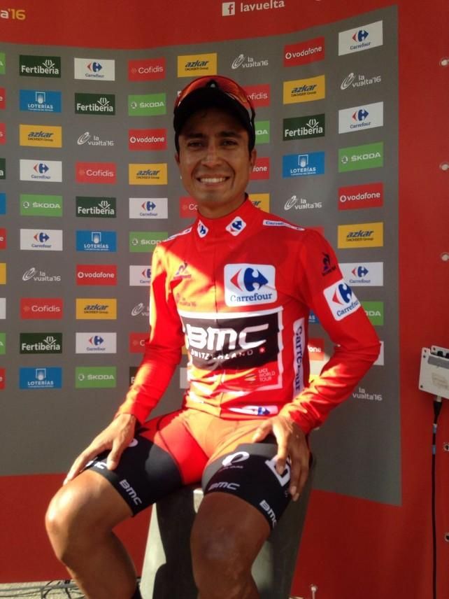 Darwin Atapuma, líder de La Vuelta con el maillot rojo.