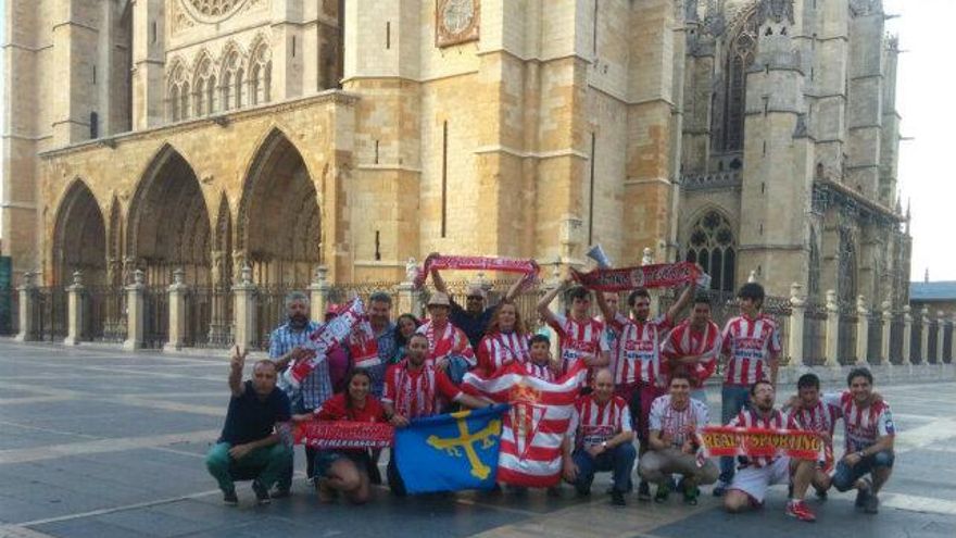 La primera peña sportinguista de León celebra el ascenso del Sporting a Primera