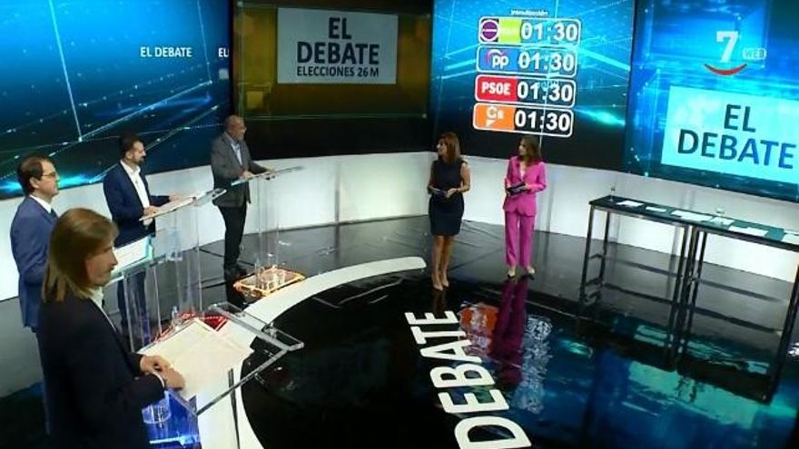Moderados por las periodistas Alejandra Abad y Nati Melendre, el primer debate electoral a la Presidencia de la Junta celebrado en 24 años, y nunca antes televisado o, como fue el caso, visible a través de internet, se centró en cuatro grandes temas, empezando por la despoblación, pero que transitó hacia asuntos como la economía, la fiscalidad y la regeneración democrática para finalizar.