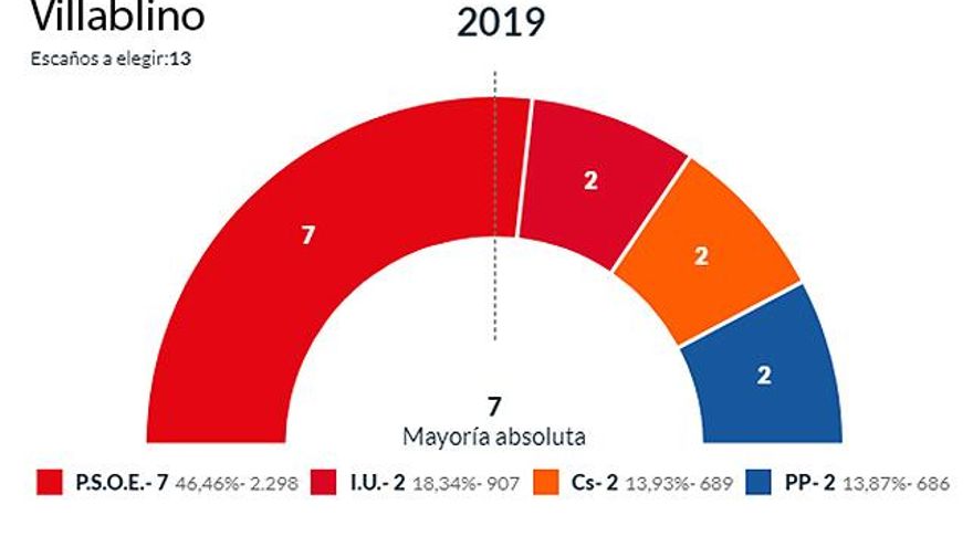 El PSOE ganaría las elecciones en Villablino con 7 concejales una vez terminado el escrutinio. Seguido por IU, Ciudadanos y PP que conseguirían 2 cada uno de ellos.