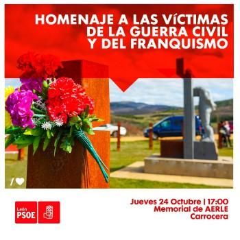 Los candidatos al Congreso y al Senado del PSOE por León, junto con cargos públicos y militantes estarán este jueves, a partir de las 17 horas, en el monolito en memoria de los represaliados por el franquismo en Carrocera, donde se llevará a cabo un homenaje a las víctimas de la Guerra Civil y del franquismo con motivo de exhumación de Franco y tendrá lugar una ofrenda floral.