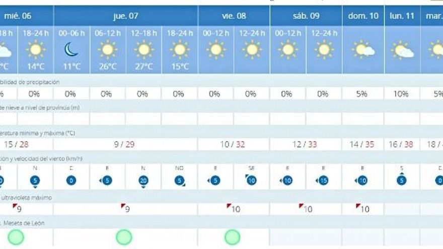 Llega una segunda y quizá hasta más dura ola de calor de este verano a partir de este fin de semana a todo el país, que en el caso de León irá remontando las temperaturas máximas hasta poderse alcanzar los 40 grados a la sombra en los peores momentos, en concreto de cara al martes 12 de julio.