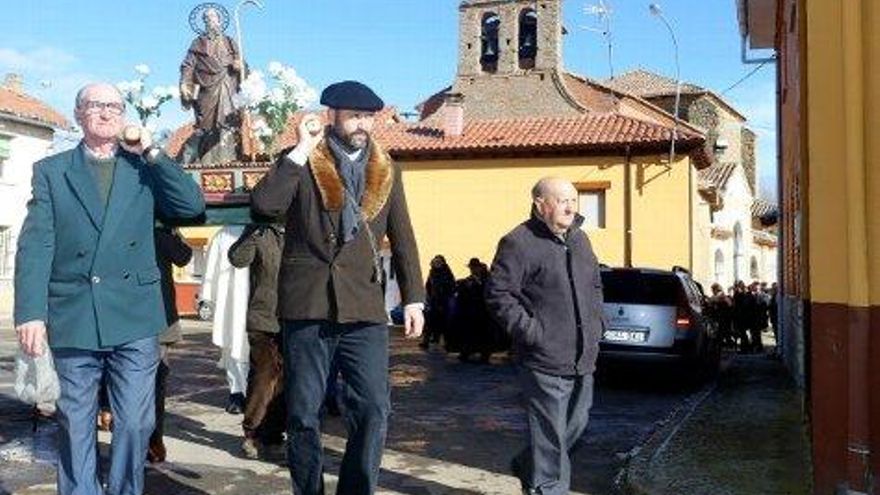 “Los versos que aquí te traigo los traigo bien estudiado, mas por si acaso la memoria o algún verso es saltado, te lo he mandado en un whatsapp y espero que haya llegado”, decía Conchi ante las risas de los asistentes, al tiempo que pedía al santo que libre a los animales “de pestes y males”. Tello también relató al santo sus vivencias en Castrotierra, el cercano pueblo que le vio nacer. “Perdona que no me quite el sombrero, pero esta helada es de las de enero”, predicaba.