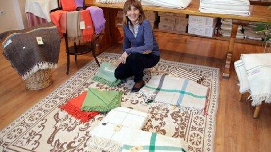 Peio García / ICAL Carmen, en su establecimiento de Val de San Lorenzo, muestra el género manufacturado en el puebloPérdida de la industria