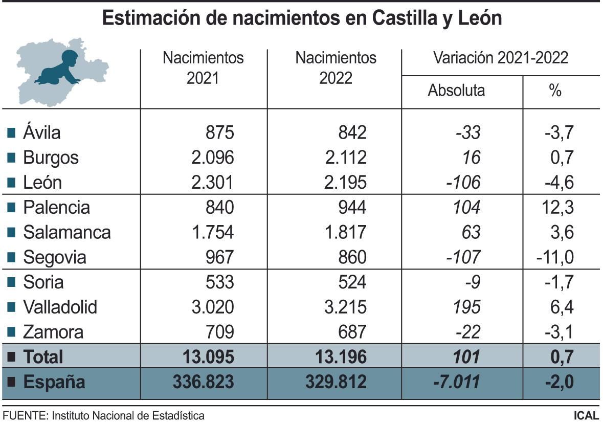 Los nacimientos en diciembre de 2022 fueron 167, una caída del 7,4% respecto al año 2019. En total, el año pasado nacieron 2.195 niños en la provincia, que se coloca la segunda de toda Castilla y León con más nacimientos ese año, por detrás de Valladolid (con 3.215). Los nacimientos en León suponen el 16,6% de los de toda la Comunidad, que en total aumentan un 0.77%.