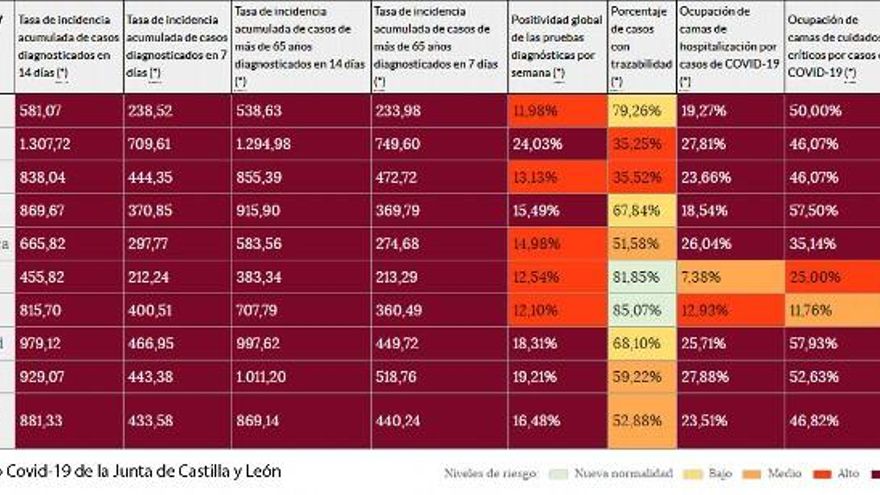 Mayor aún fue el incremento porcentual en Salamanca, donde la cifra se triplicó al pasar de 46 a 152, y el aumento fue muy importante asimismo en Palencia (de 66 ayer a 113 hoy) y en Zamora (de 71 a 113). Por debajo del centenar de nuevos casos se situaron Soria con 51, Ávila con 37 y Segovia con 26 (estas dos fueron las únicas donde descendió la incidencia).