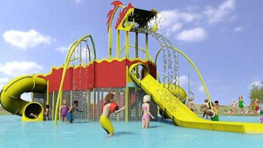 El dragón, diseñado exclusivamente para Valencia de Don Juan, consiste en una torre de juego, ubicada dentro de una piscina de 580 m2 y 35 cm de profundidad, con diferentes plataformas de las que surgen varios toboganes. Toda la estructura está dotada de chorros y cascadas que ofrecen dinamismo e interactividad.