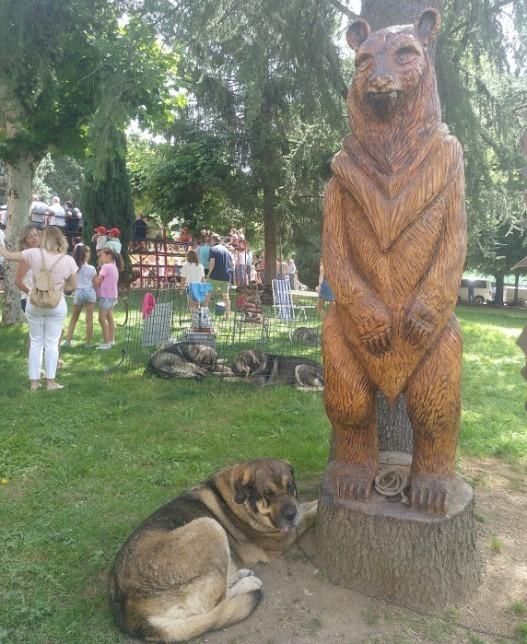 Se pudo disfrutar a lo largo de toda la jornada de una excelente muestra de unos ejemplares de mastín muy hermosos, que mientras aguardaban su turno para acudir al ring a mostrar su calidad y bondades, descansaban sobre la hierba del parque a la sombra de la arboleda. Lo que permitió al numeroso público acercarse y pasear entre ellos o hacerse fotos con los mismos, pues esta raza apenas es inquieta o nerviosa y facilita con su actitud la aproximación.