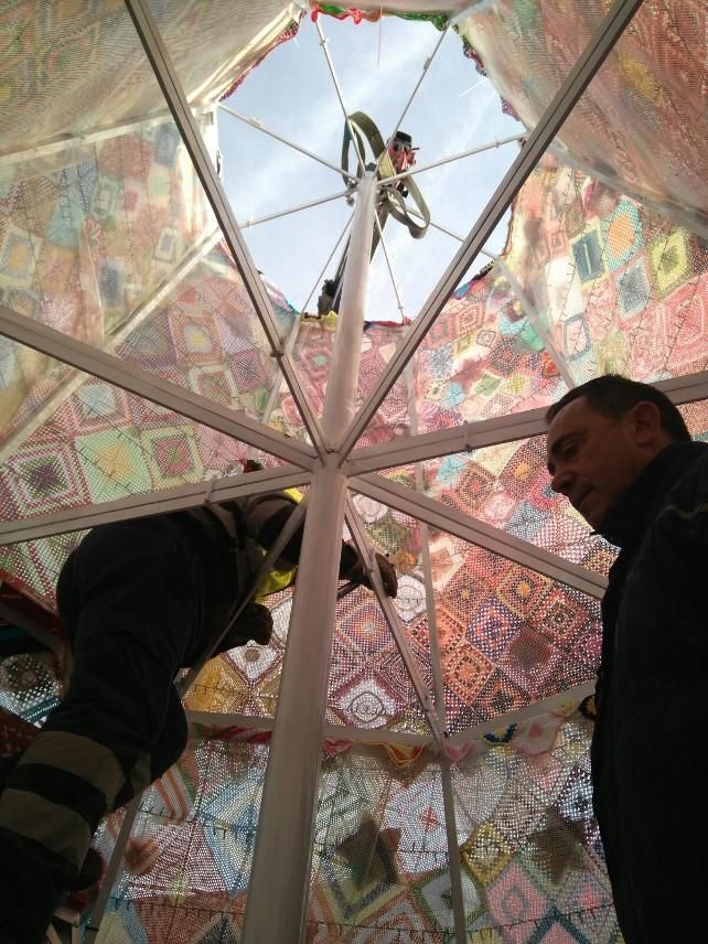 Villoria de Órbigo 'planta' el árbol de Navidad de ganchillo más grande del mundo