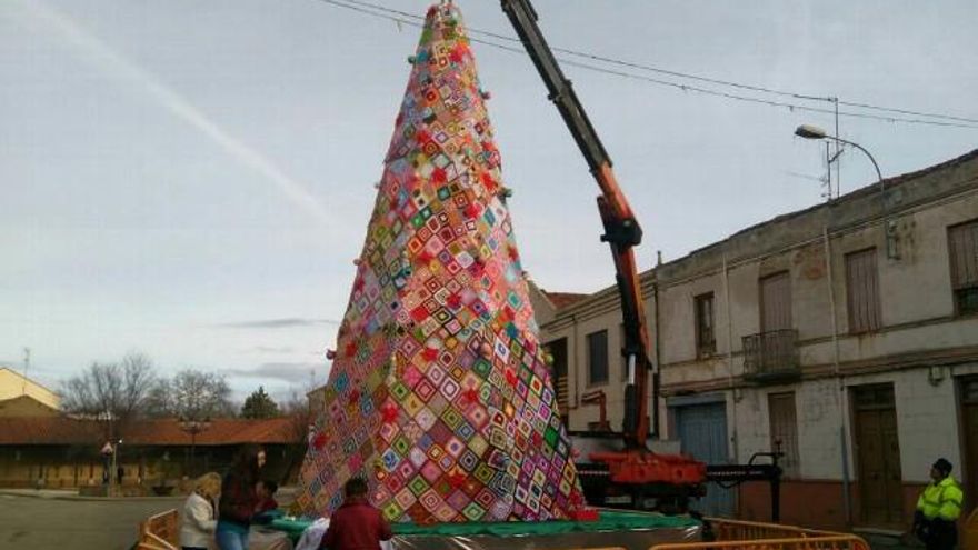 Se trata de un gran árbol de Navidad con miles de cuadros de ganchillo, que suma siete metros de alto y tres metros y medio de diámetro, y que aspirará a batir el récord Guinness. El encendido ha sido esta misma tarde, para dar inicio así a los numerosos actos navideños de este municipio leonés de la comarca del Órbigo.