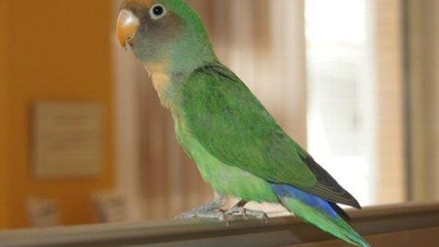 Kiwi es un agaporni 'papillero', lo que significa que con tan solo 12 días fue adoptado por Javi, su dueño. “Le crié desde pequeñín y no tiene miedo a la gente. En cuanto sale de la jaula va a las manos de las personas”.