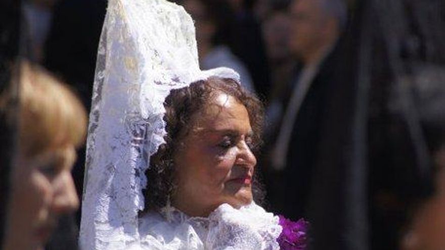 Muchas son las historias que se cuentan sobre el atuendo, blanco inmaculado, de 'la manola blanca'. Algunos rumores la acercan nada menos que a una concesión por parte del Papa Juan Pablo II, quién la dio el permiso de procesionar como plañidera pero, a diferencia de lo que marca la tradición, de blanco de los pies a la cabeza.