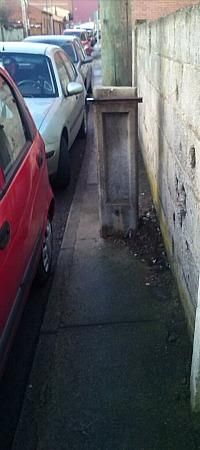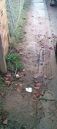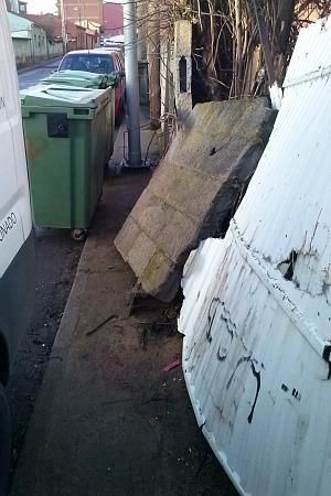 Aceras estrellas, postes de luz en el medio, muros caídos, barrizales tras llover... A los vecinos de Villaquilambre se les complica el paso por la calle La Sierra de Villaquilambre, ubicada a unos 100 metros del Ayuntamiento de la localidad.